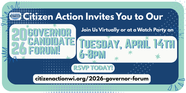 Citizen Action is excited to host a forum for governor candidates, giving folks a chance to hear directly from the candidates about values such as healthcare, climate change, democracy, and more.